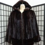 BEAUTIFUL BLACK MINK TAILS FUR JACKET/PARKA FOR MEN. IT IS ACCENTUATED WITH DETACHABLE FUR HOOD, SIDE POCKETS AND FRONT ZIPPER CLOSURES.