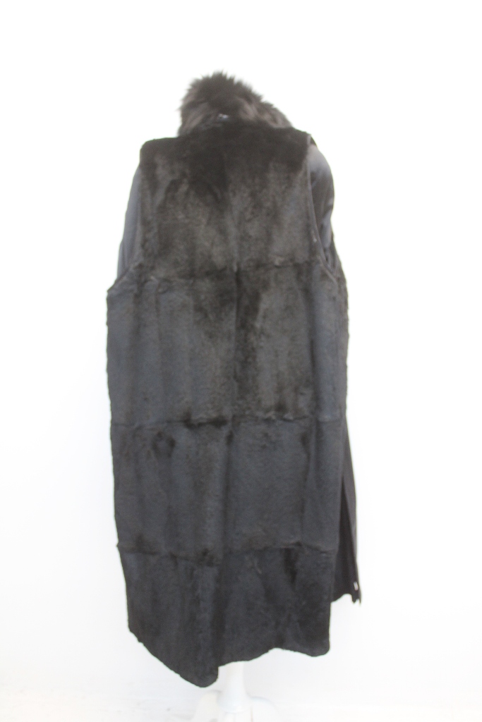 EXCELLENT BLACK SHEARED RABBIT FOX FUR RAINCOAT COAT JACKET WOMEN WOMAN SIZE 8