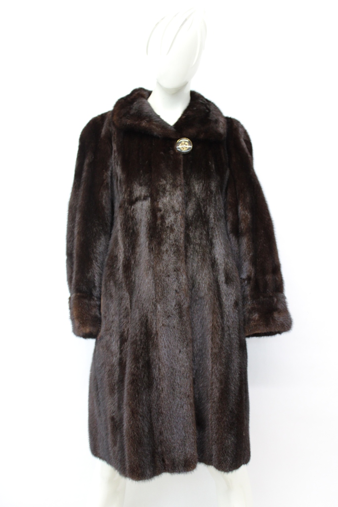 BEAUTIFUL & VERY STYLISH DARK RANCH MINK FUR COAT FOR WOMEN!