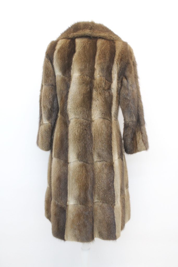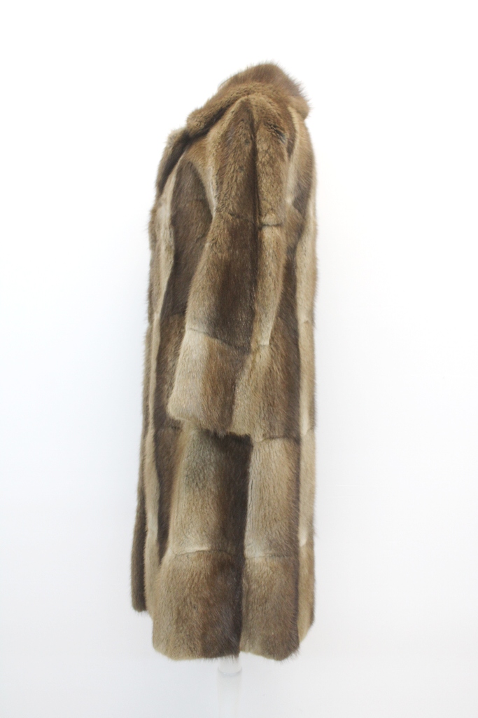 LUXURIOUS AND CLASSIC, THIS NATURAL BROWN MUSKRAT FUR COAT FOR WOMEN EXUDES TIMELESS ELEGANCE AND REFINED WARMTH.
