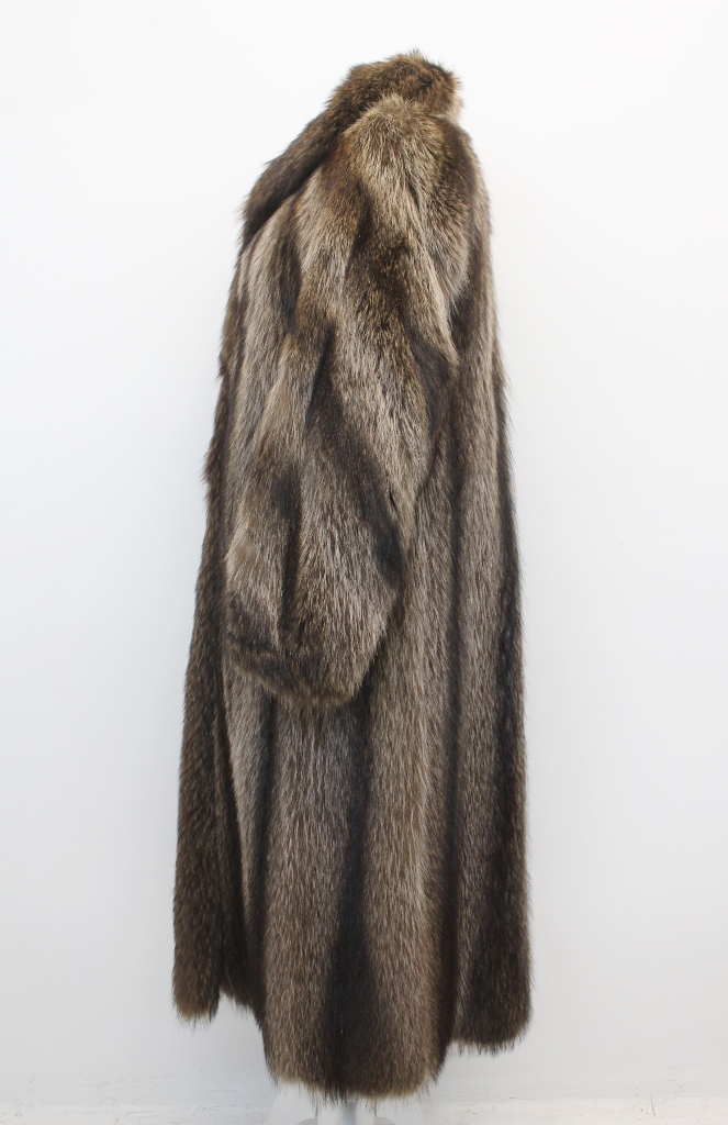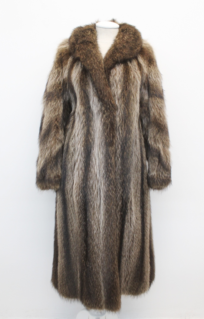 BEAUTIFUL & VERY STYLISH NATURAL RACCOON FUR COAT FOR WOMEN! IT IS MADE FROM FULLY LET OUT FUR SKINS, THE BEST!