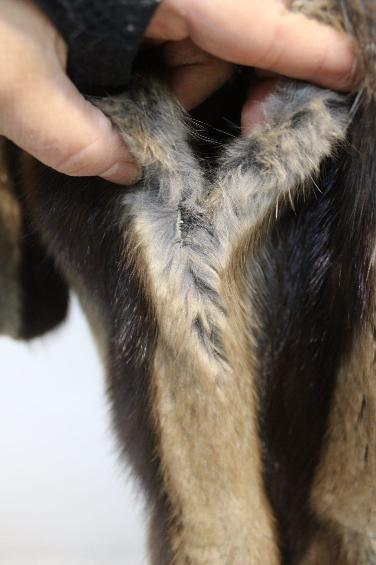 THIS ITEM IS SCRAP: THE FUR IS DAMAGED BUT THE GOOD PART CAN BE USED FOR FUR ACCESSORY PROJECT!