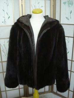 REFURBISHED NEW CANADIAN DARK RANCH MINK FUR COAT BOMBER JACKET WITH HOOD MEN MAN SIZE ALL