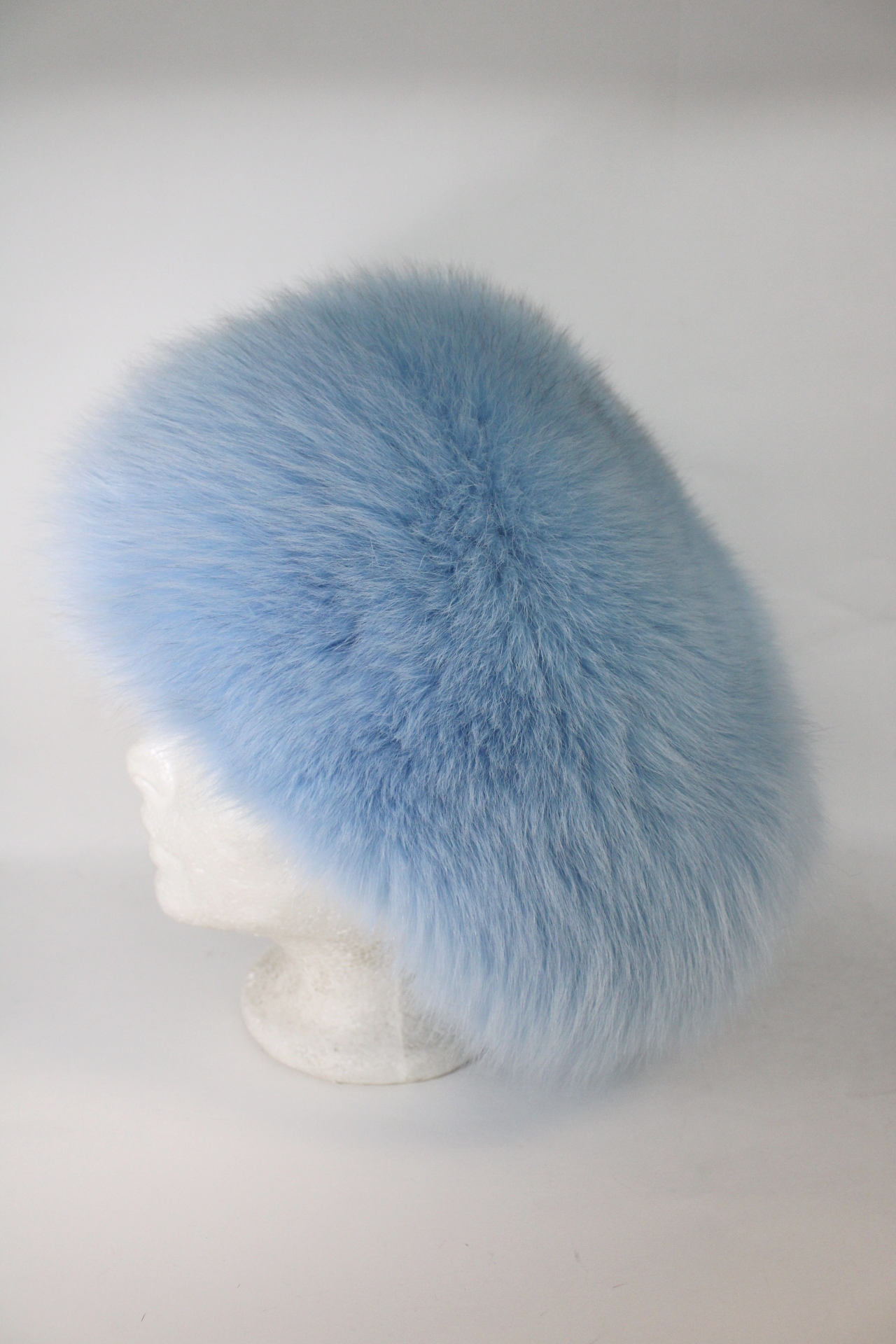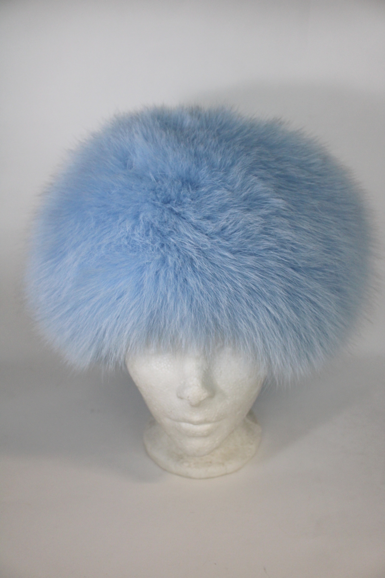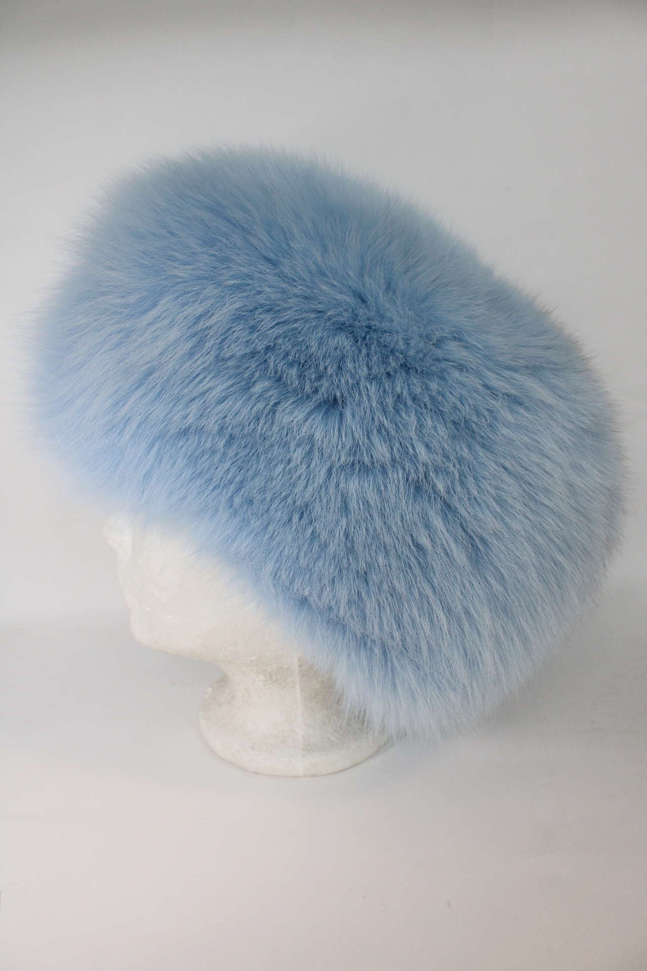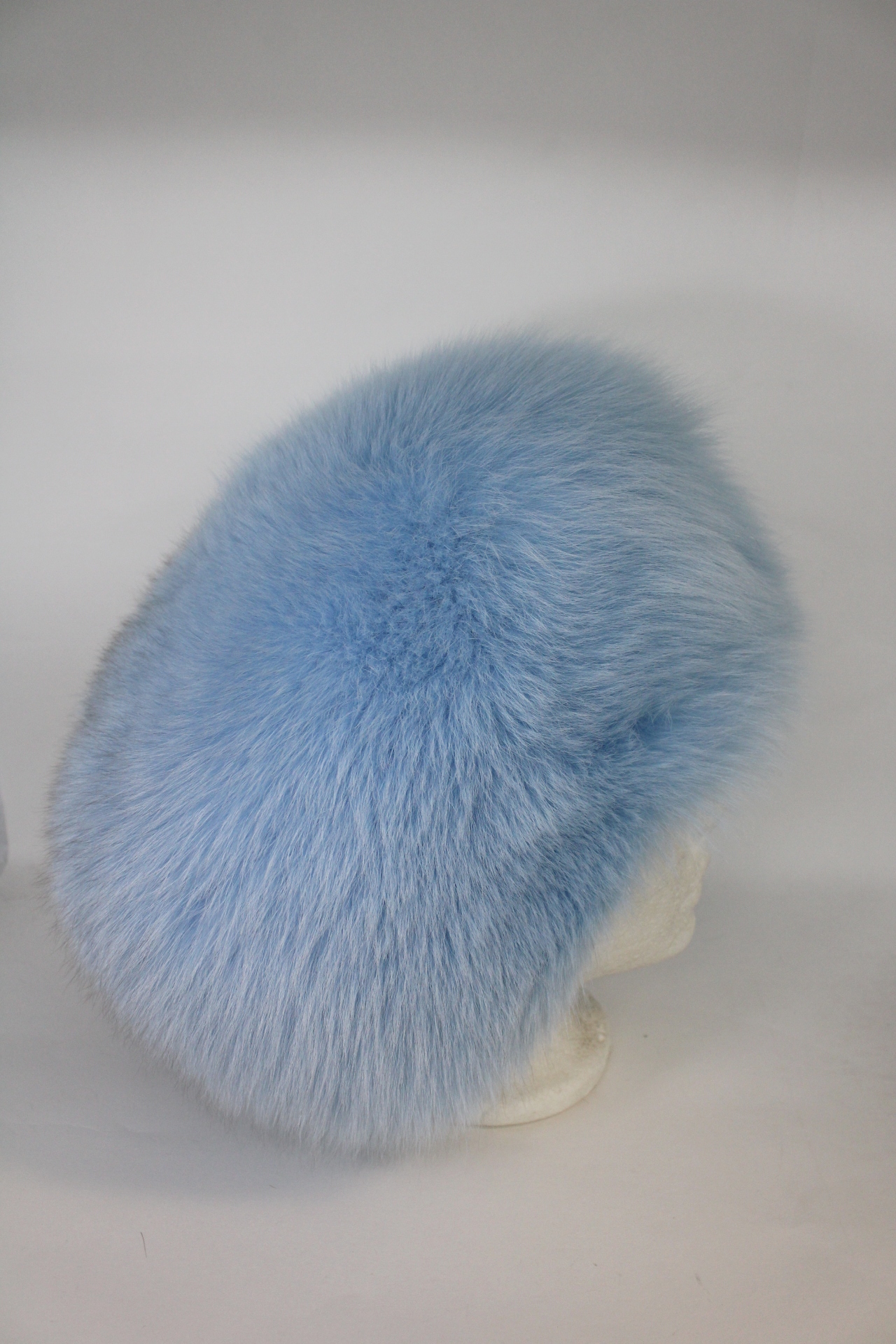 VERY STYLISH AND UNIQUE BABLY BLUE FOX FUR PILLBOX STYLE HAT FOR WOMEN!