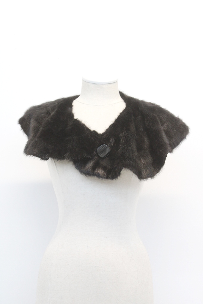 VERY STYLISH BLACK MINK FUR COLLAR /STOLE WITH BUTTON & LOOP CLOSURE!