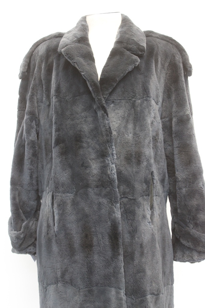 ELEGANT BLUE SHEARED MUSKRAT FUR COAT FOR WOMEN!
