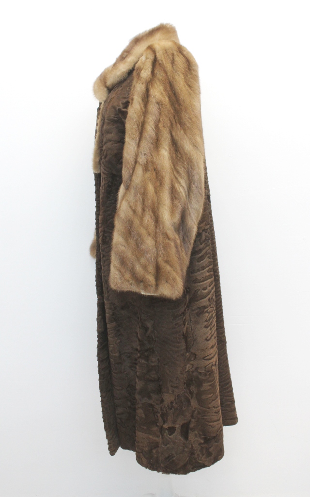 VERY STYLISH BROWN SWAKARA & PASTEL MINK FUR COAT FOR WOMEN