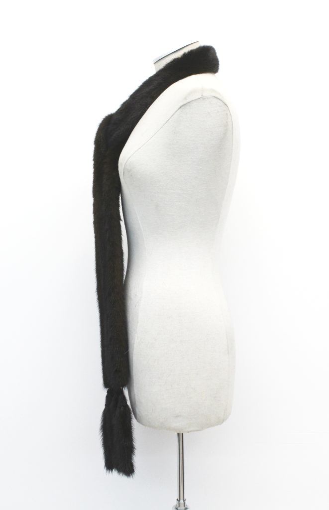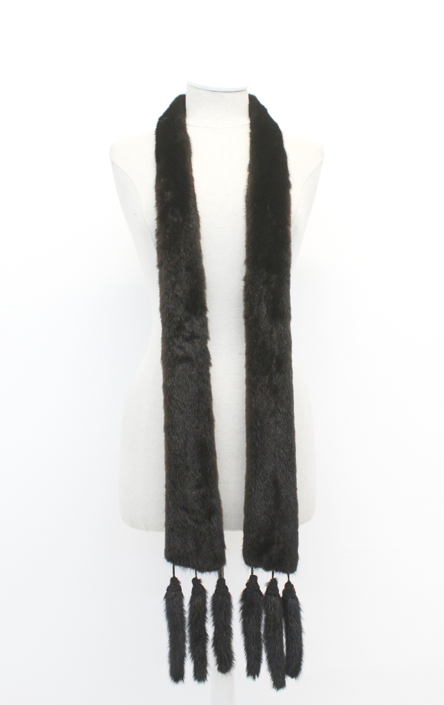 EXCELLENT CANADIAN DARK RANCH MINK FUR SCARF W/FRINGES WOMEN WOMAN SIZE 84″ X 2″