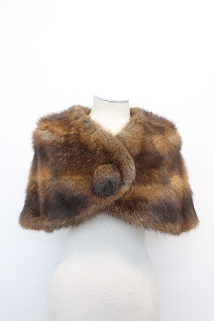 BEAUTIFUL & VERY STYLISH MUSKRAT FUR STOLE WITH A FUR POMPOM FOR WOMEN!