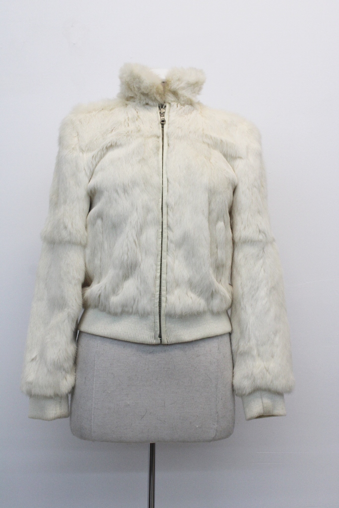 EXCELLENT WHITE RABBIT FUR JACKET COAT WOMEN WOMAN SIZE 2-4 PETITE