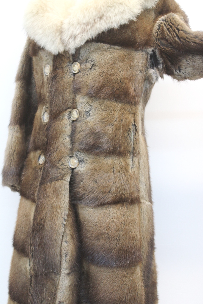 BROWN MUSKRAT & BLUE FOX FUR COAT IN SCRAP CONDITION.